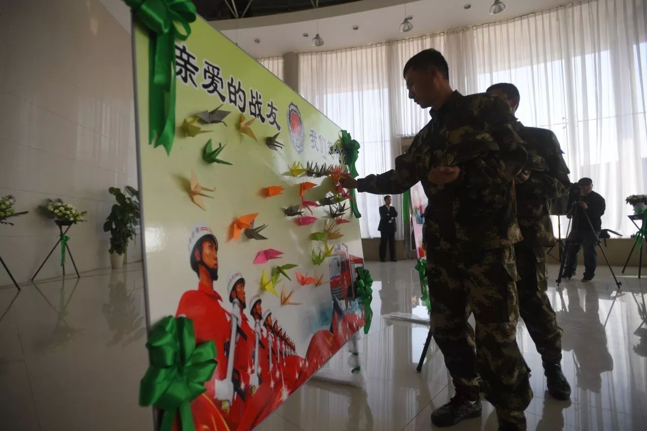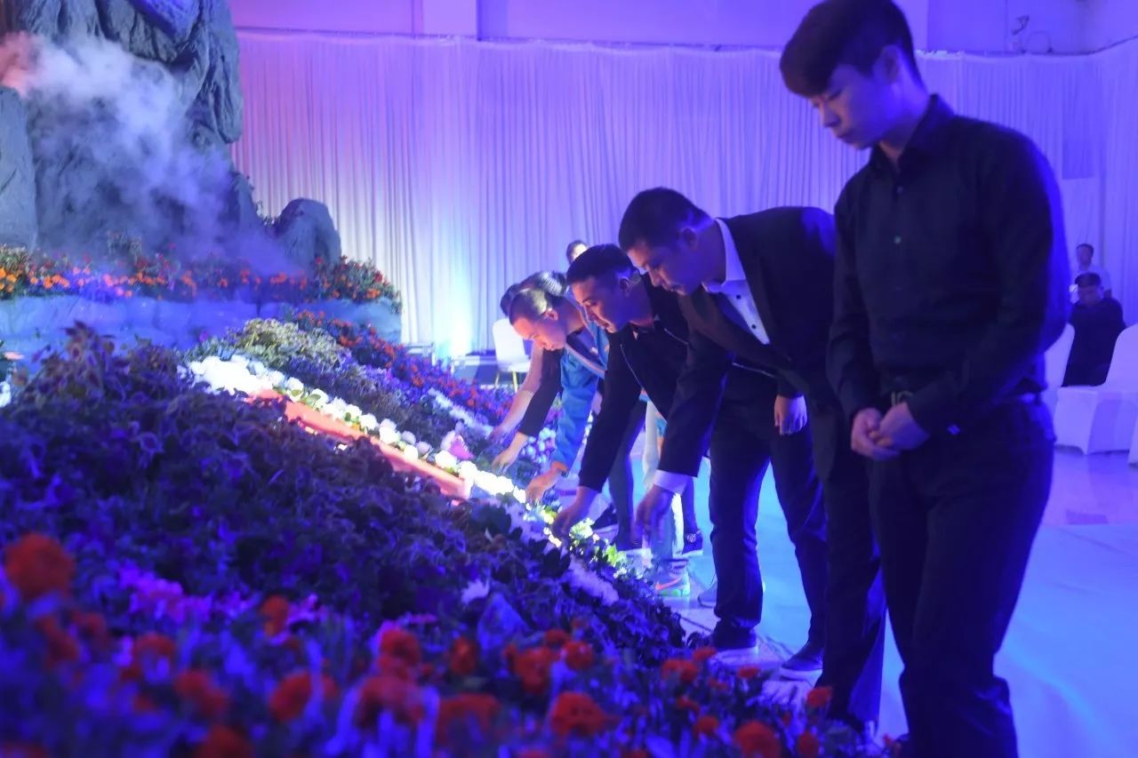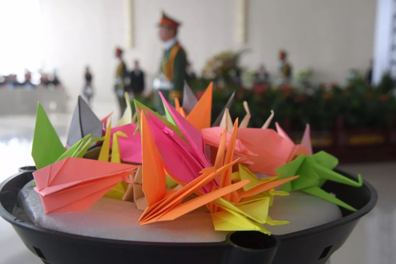 现场布置庄严肃穆,主持人用娓娓道来又饱含深情的声音,重现了那一场残酷的战斗;更用沙画的形式,别出心裁又充满温情地回顾了烈士短暂的一生。人们向一颗浴火雄心致敬,悼念永不磨灭的英灵,愿千纸鹤伴他飞翔,丰功载册,致敬不朽。